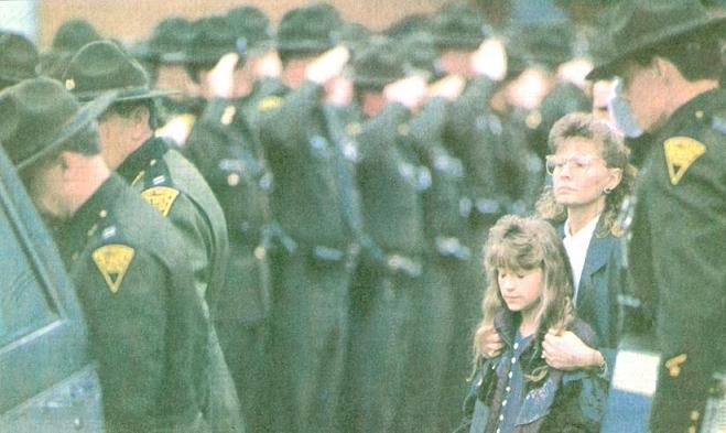 HARRISVILLE (AP) - A state trooper shot dead while investigating a dispute between neighbors loved his job and talking about family, a friend said Monday. More than 1,000 people, including officers from four other states, attended the funeral of Trooper Larry Hacker at the Ritchie County High School gymnasium. Hacker, 34, of Harrisville died Friday after being shot in a hollow near Pullman. "He was very proud of that uniform," Trooper Ronald Blevins said during his eulogy. "The day ho graduated from the State Police Academy was one of the proudest days of his life. "The uniform did not make Larry a trooper. But rather, he made the uniform," said Blevins, a pastor at the First Assembly of God Church in Harrisville. Blevins, who trained Hacker as a rookie in 1989, said Hacker liked to hunt and fish and regretted not having enough time to spend with his wife, Diane, and two young daughters. "I'm going to miss his little stories," Blevins said. "Larry could take a one-minute story and turn it into a two-hour episode." Earlier, hundreds filed past the open casket where Hacker's body was dressed In uniform with his trooper's hat placed over his chest. Flowers surrounded the casket and two troopers stood at attention at both ends. After Hacker's family entered, 18 troopers marched in pairs toward the casket, saluting slowly as they reached It. In attendance were more than 200 state troopers, Gov. Gaston Caperton, Public Safety Secretary Joseph Skaff and law enforcement officers from several states. Col. Thorn Kirk, superintendent of state police, helped carry the casket. The Rev. Mark Minney said Hacker's death shocked the community. "I had a great deal of respect for this young man," Mlnney said. "It has been for our good that he chose the occupation that he did." He said too often people viewed officers such as Hacker as "just a gun and a badge." "I want you to know this was a man," Mlnney said. "He had a family, he had a wile, he had children. We need to remember these things." As the casket was carried from the gym, hundreds of officers stood at attention and saluted as It passed. His family followed. More than 100 police cruisers with their lights flashing escorted the limousine to a cemetery in Gilmer County about 50 miles away. Hacker was the first trooper slain in the line of duty since April 1989. "It brings back to home with each one of us just how dangerous this profession is that we practice," said state police Cpl. R.D. Gillespie in Franklin. "With everyone coming together it starts the healing process." Hacker was investigating a dispute between neighbors. Dennis Ferguson, 67, of Pullman is accused of shooting Hacker as he walked up Ferguson's driveway about 10 miles east of Harrisvlfle, police said. Neighbors had called to complain Ferguson was using his pickup to block a one-lane road nearby. Ferguson remained in the Ritchie County Jail without bond Monday pending a preliminary hearing, which has not been set. |